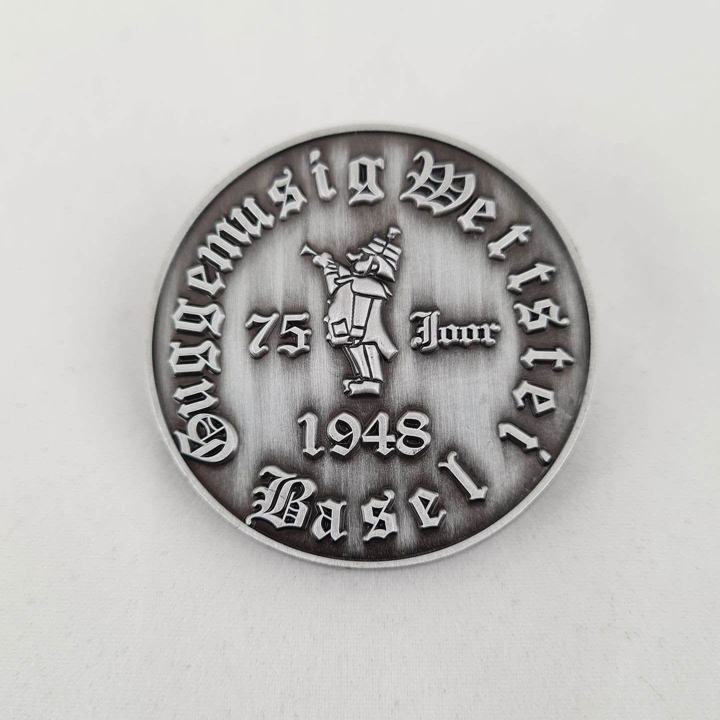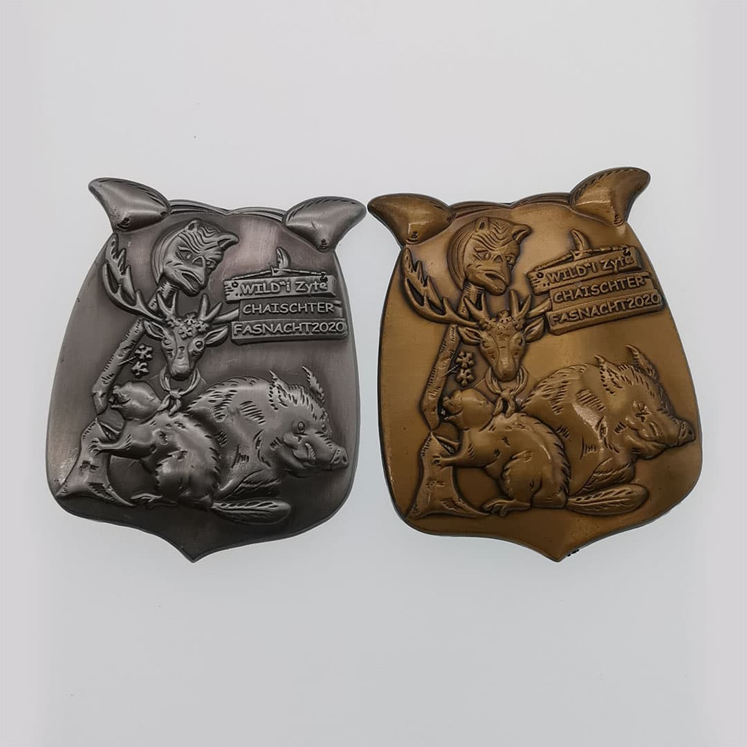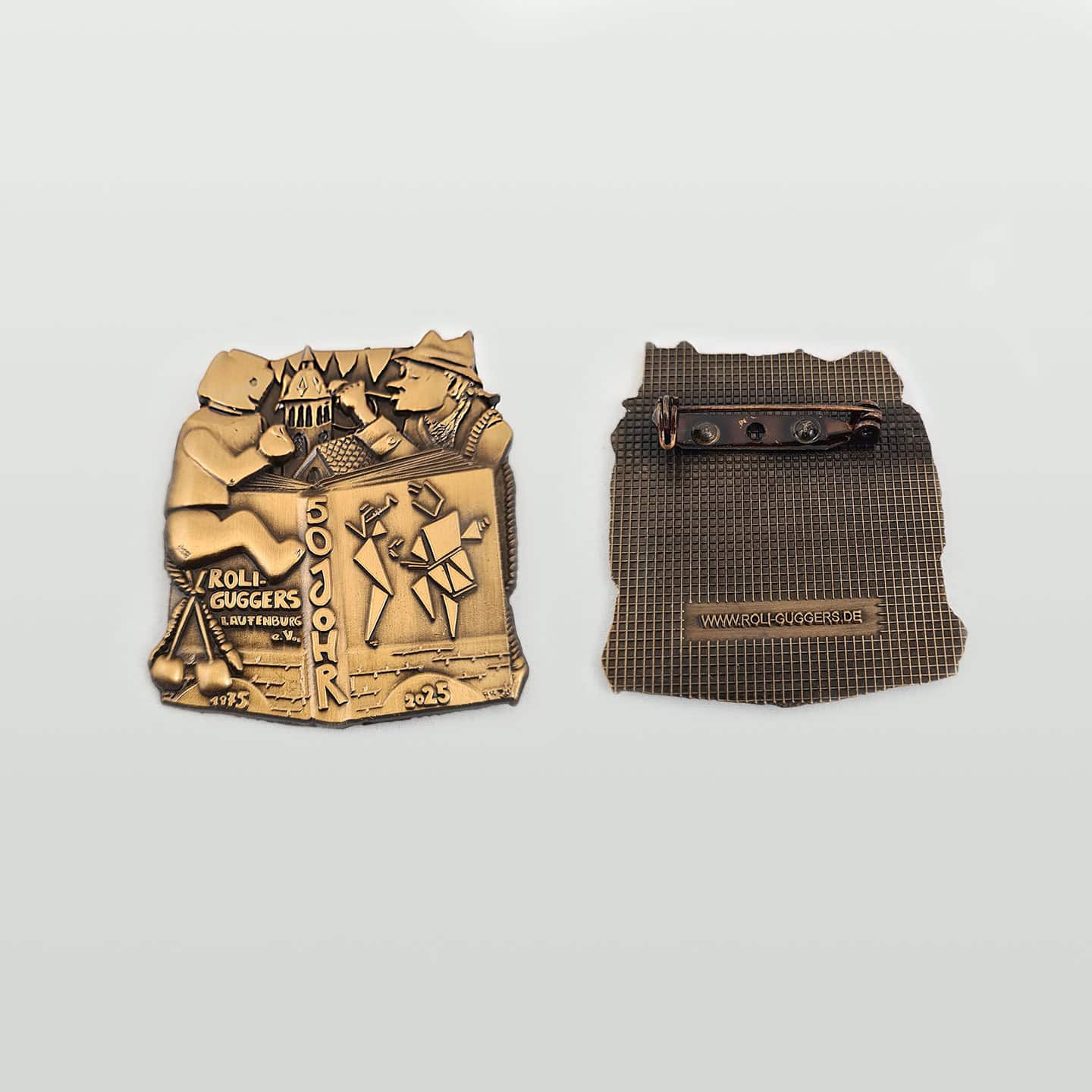 - Metallabzeichen in dreidimensionaler Reliefprägung, silber und bronze