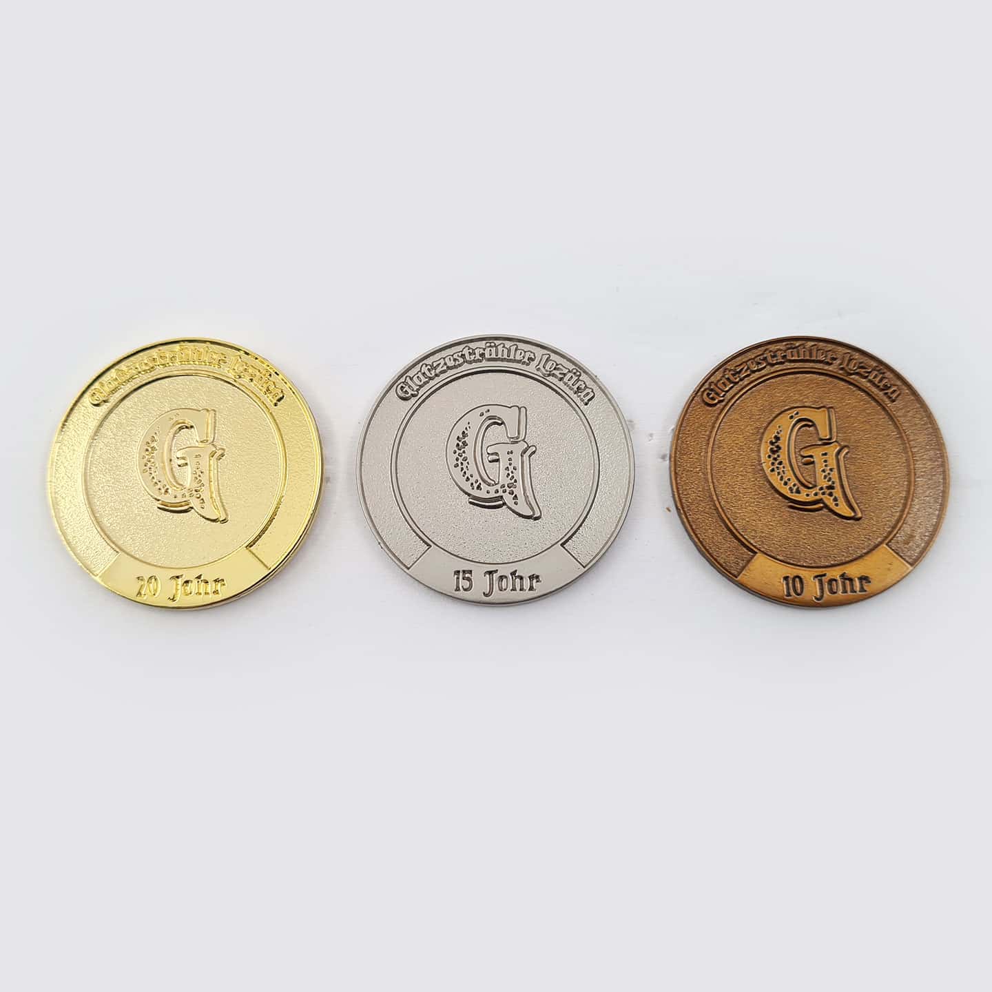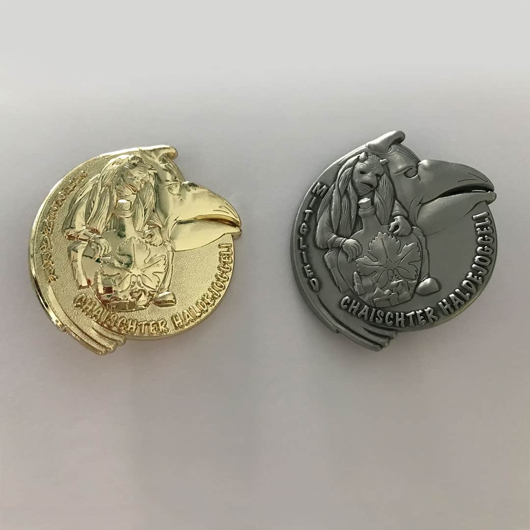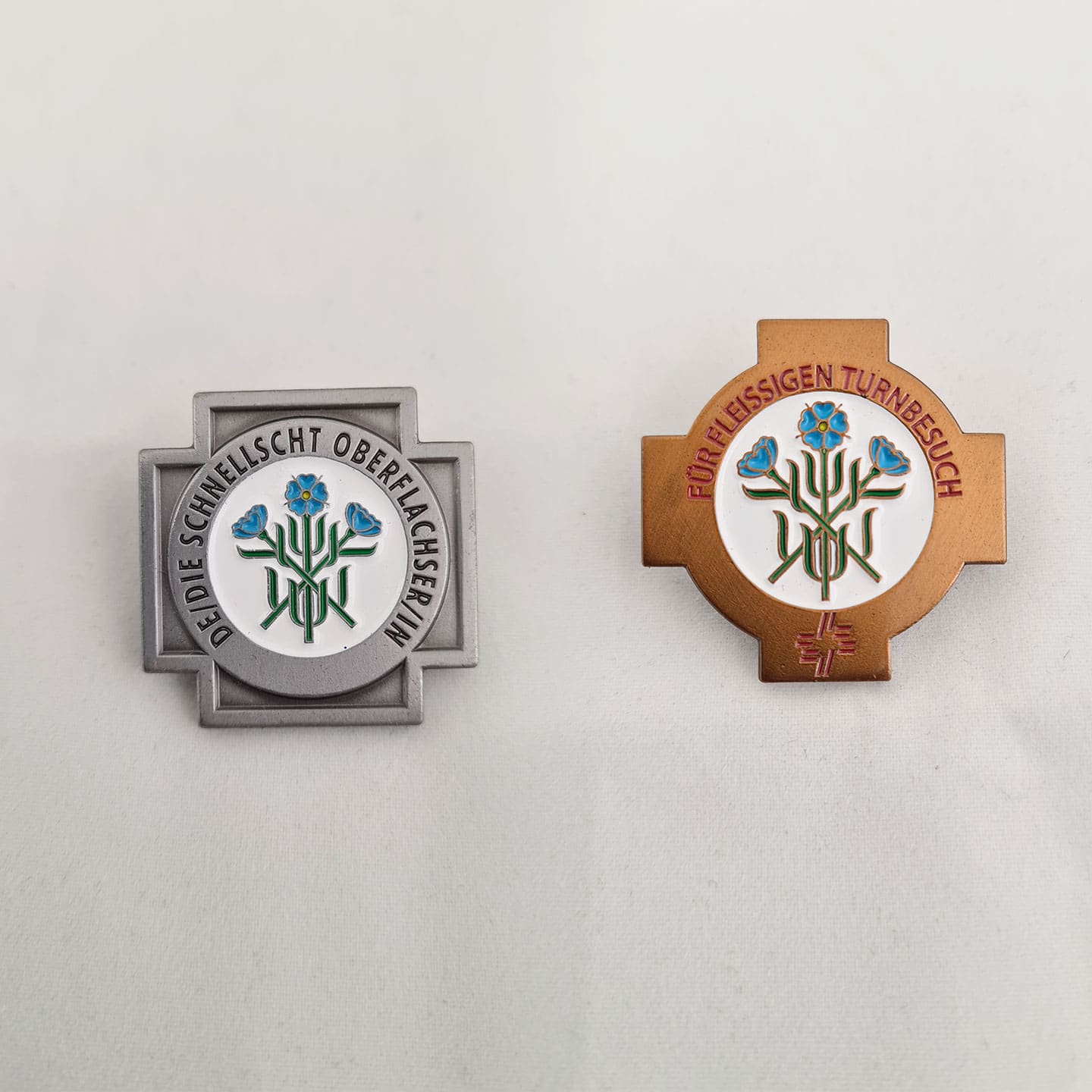 - Metallabzeichen in dreidimensionaler Reliefprägung, gold und silber