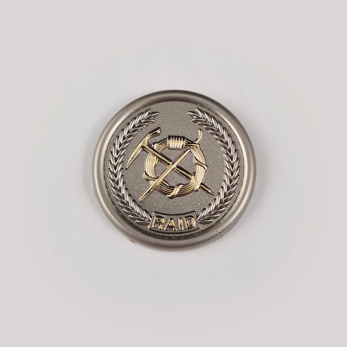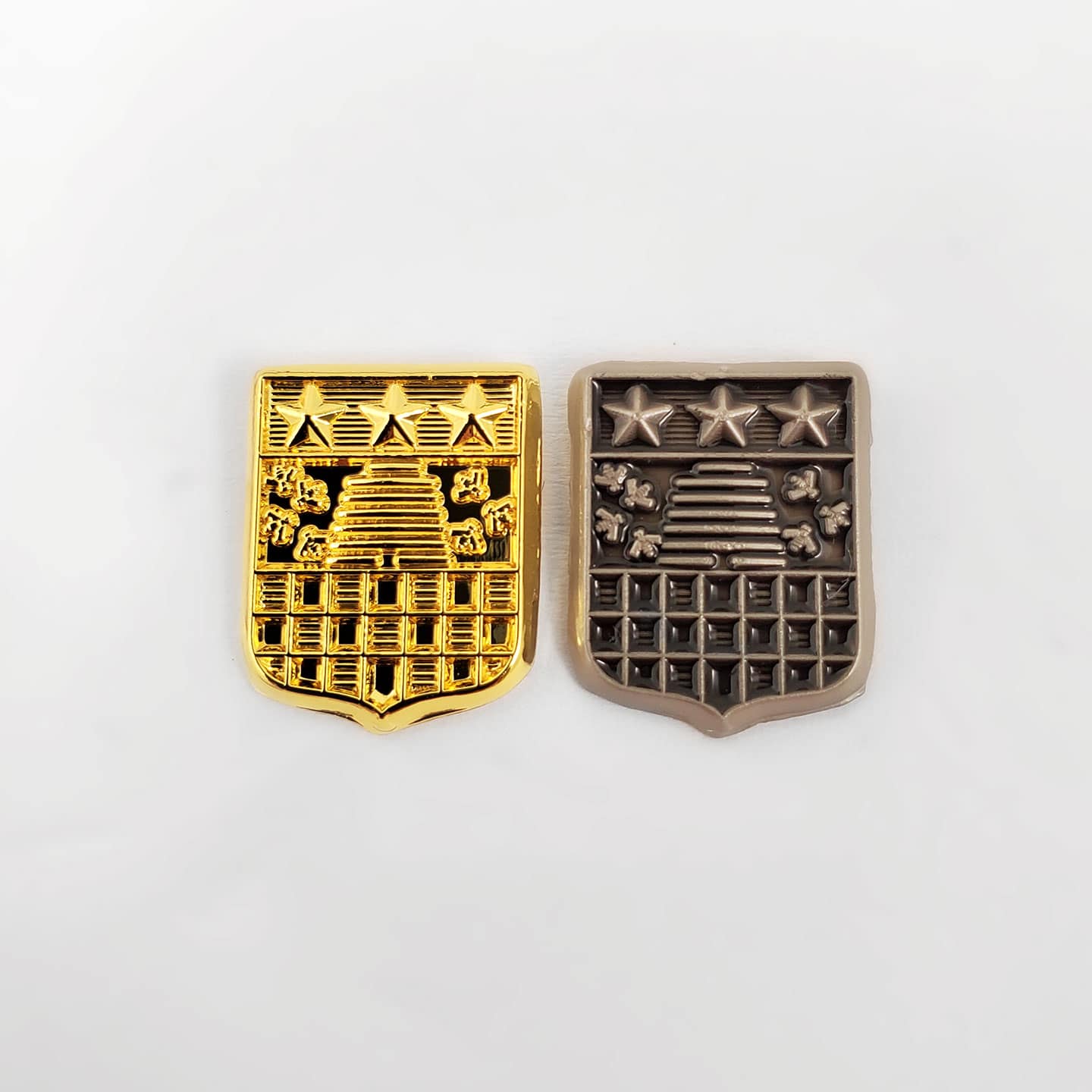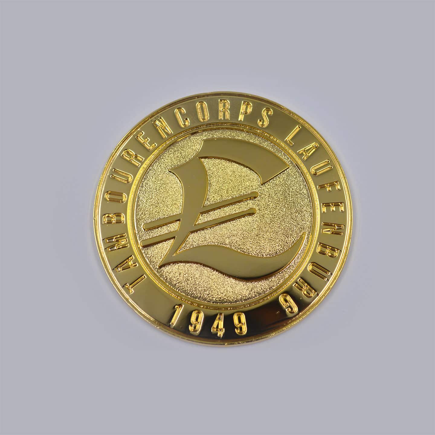 - Metallabzeichen in dreidimensionaler Reliefprägung, gold und silber