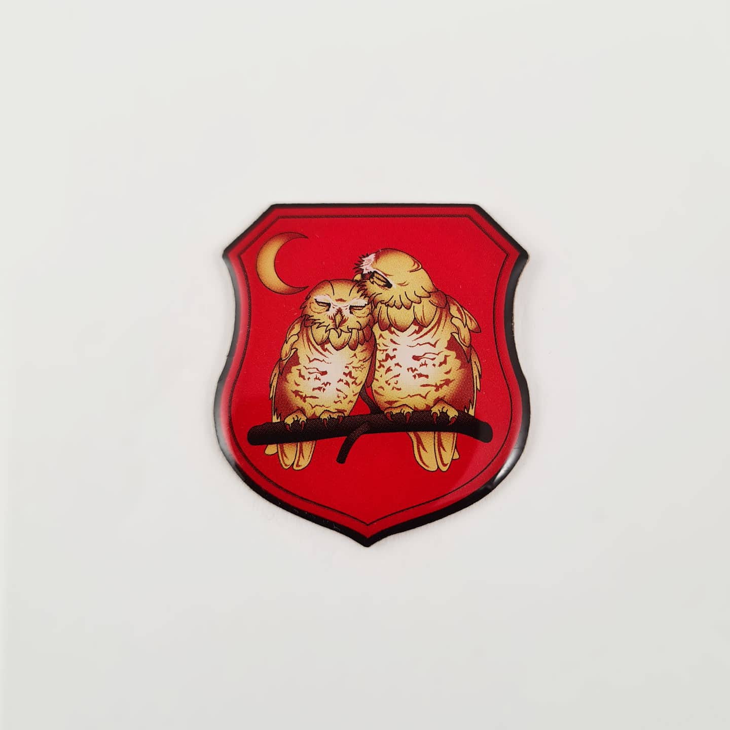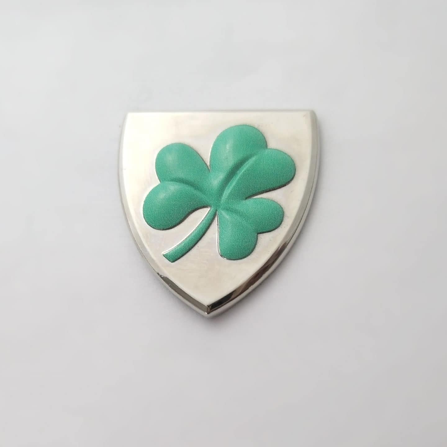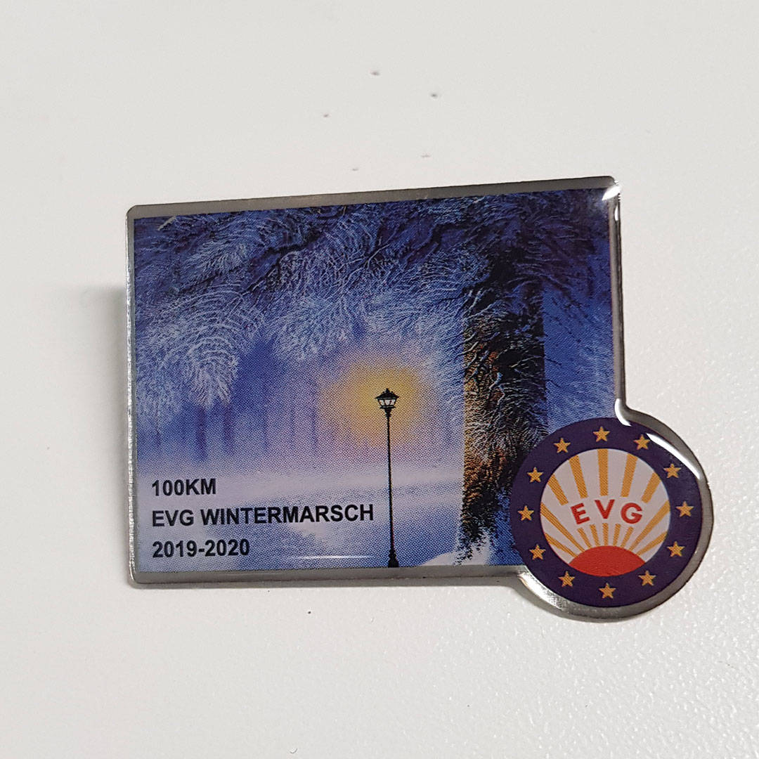 Das Abzeichen kann entlang der Konturen ausgestanzt werden und ist in den Grundfarben gold, silber, bronze oder kupfer erhältlich. Auch eine vollflächig farbige Bedruckung ist möglich.
