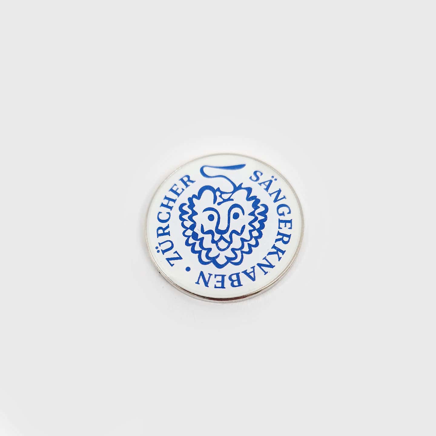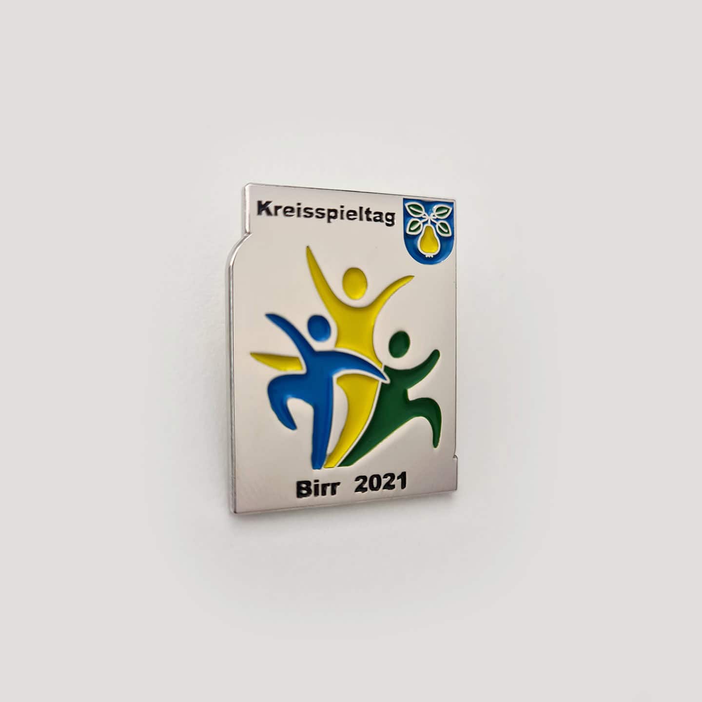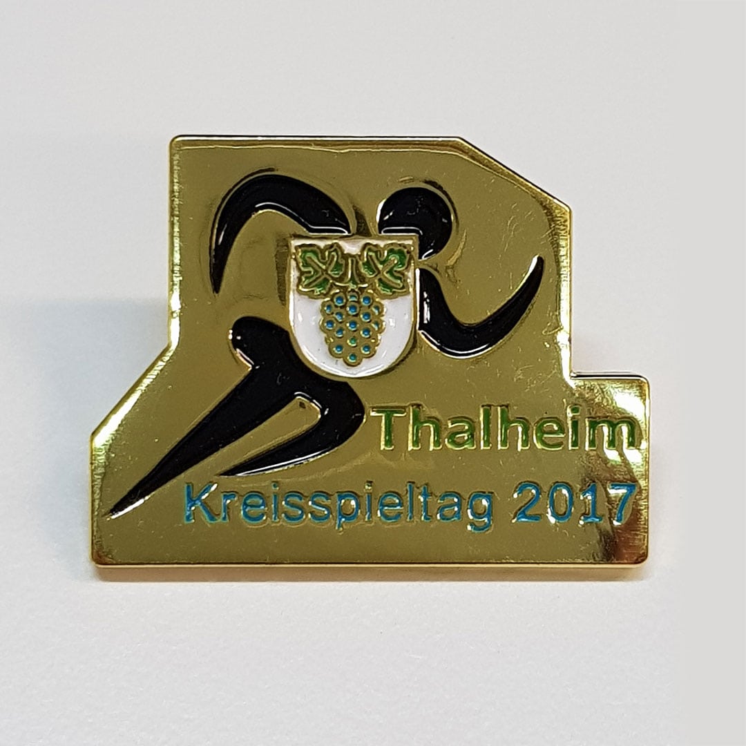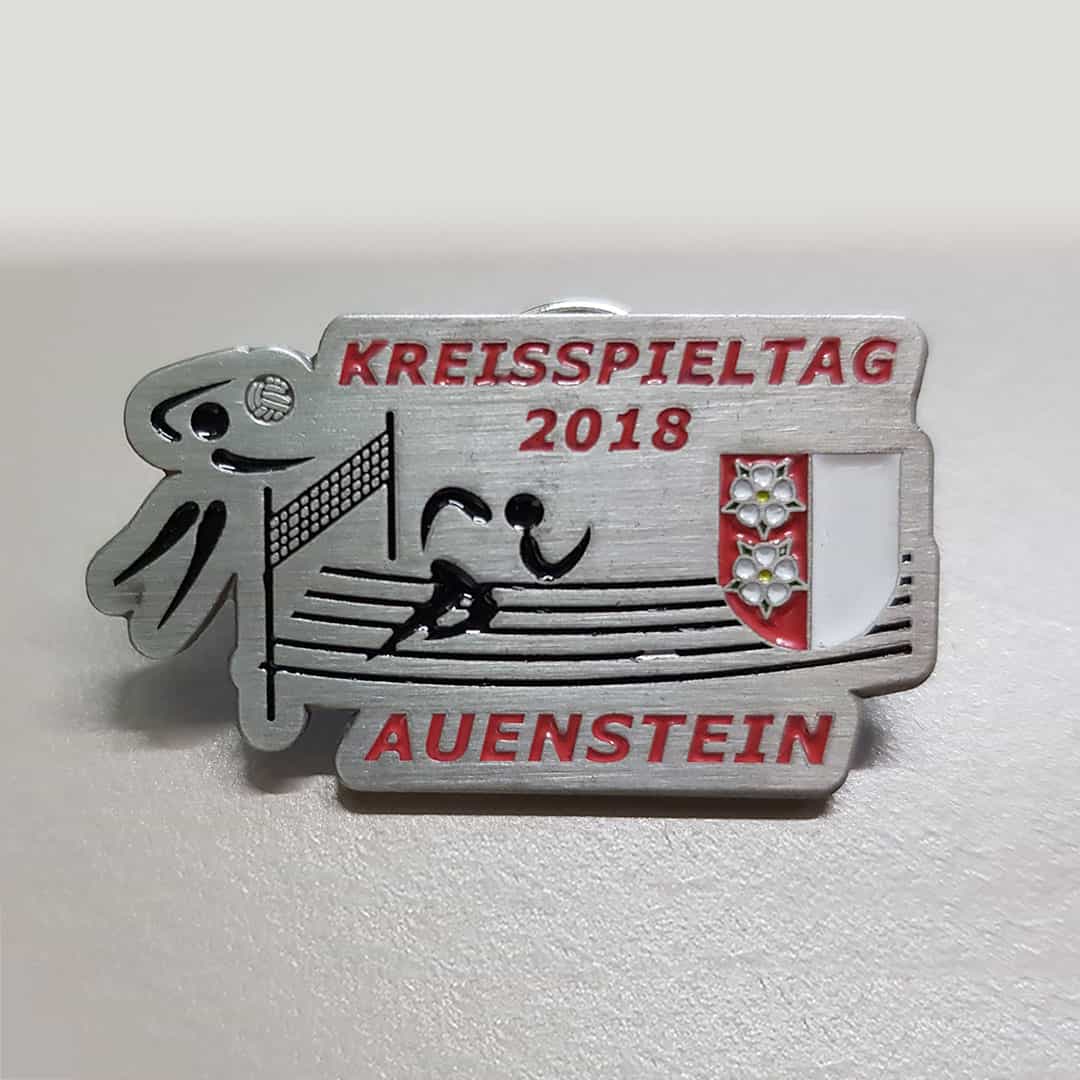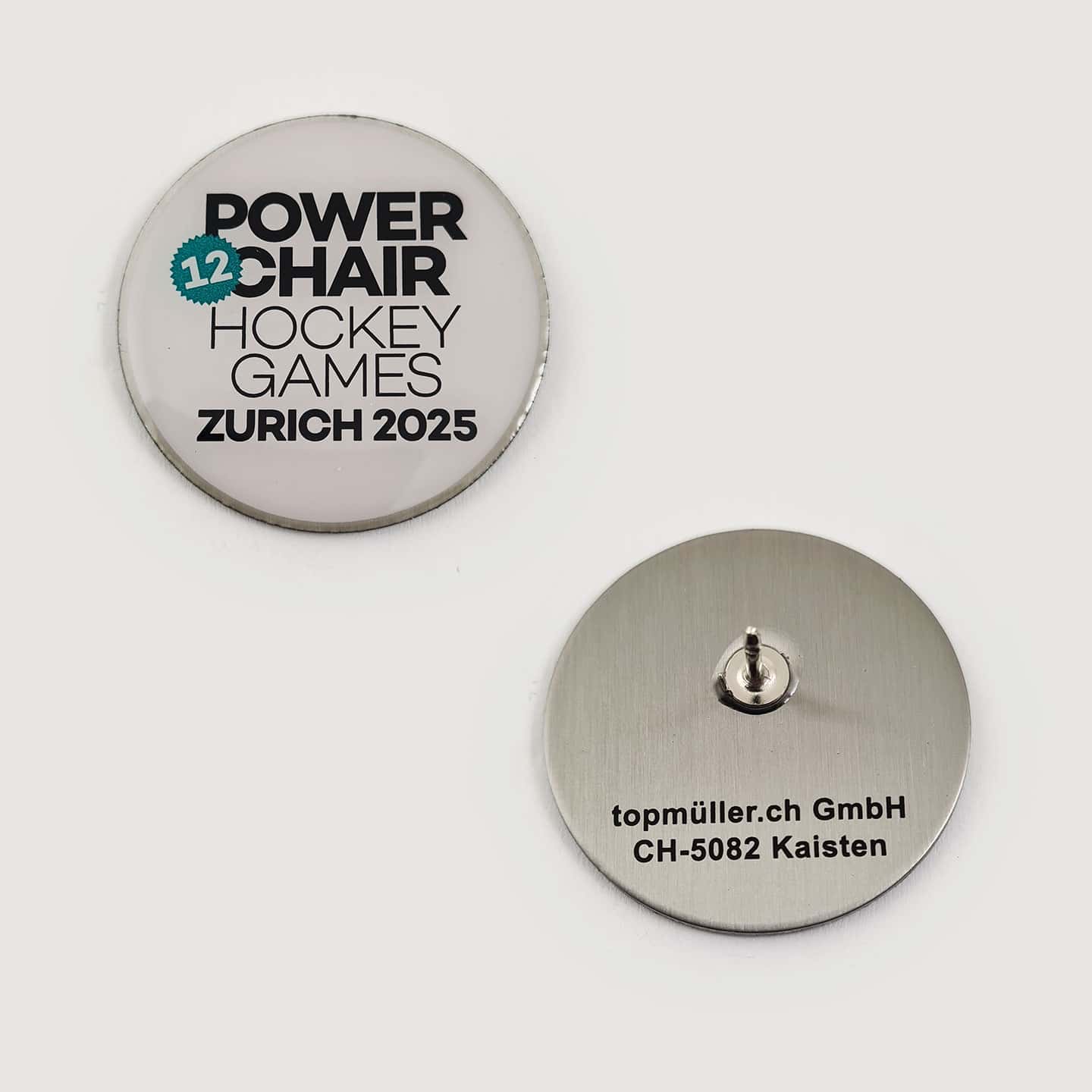 - Pin, gestanzt, Text in schwarz ausgelegt