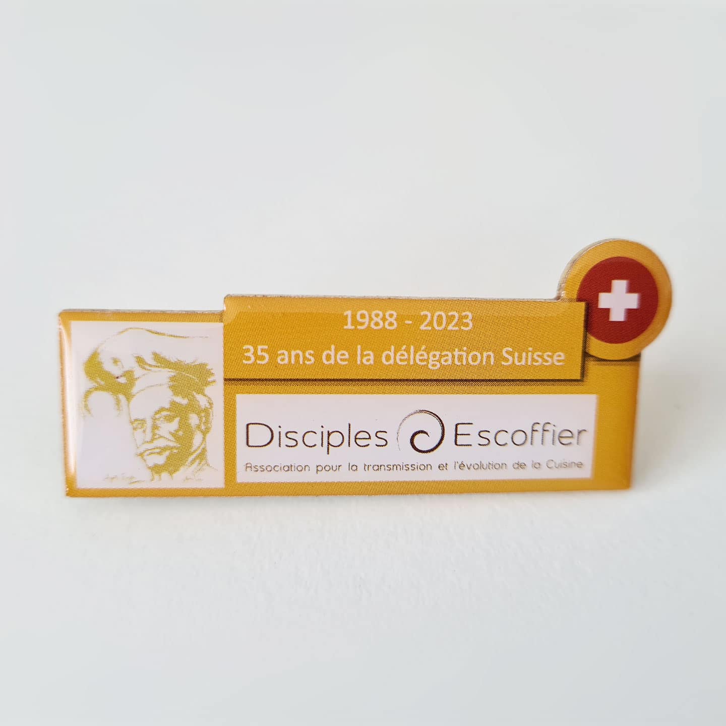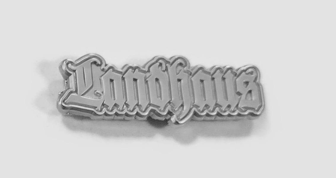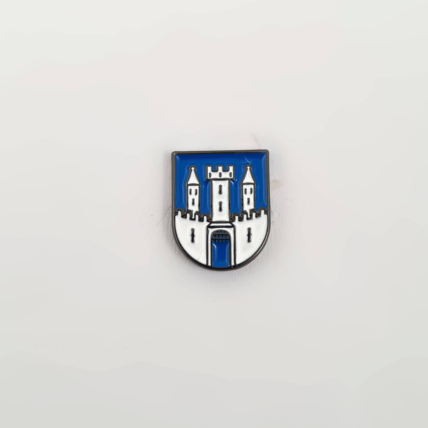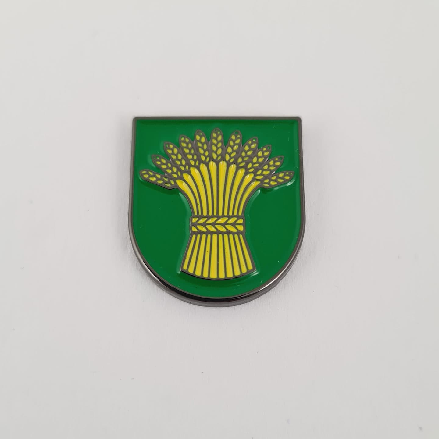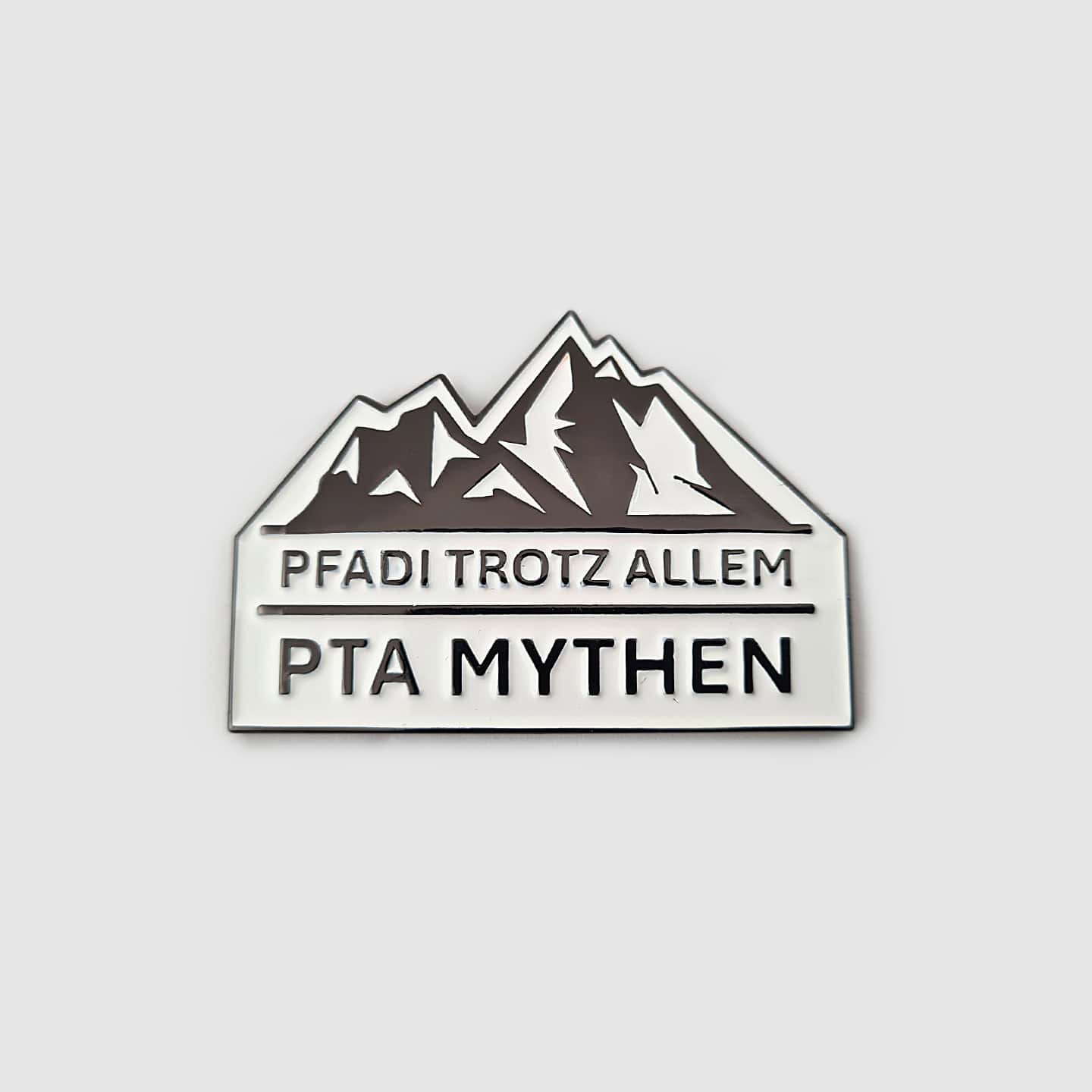 - Pin, gestanzt, Text in schwarz ausgelegt