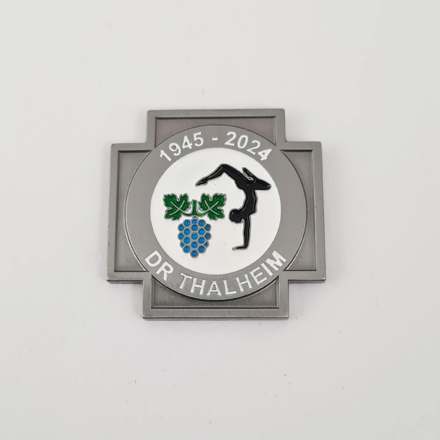 - Turnkreuz, silber mit farbig ausgelegter Schrift