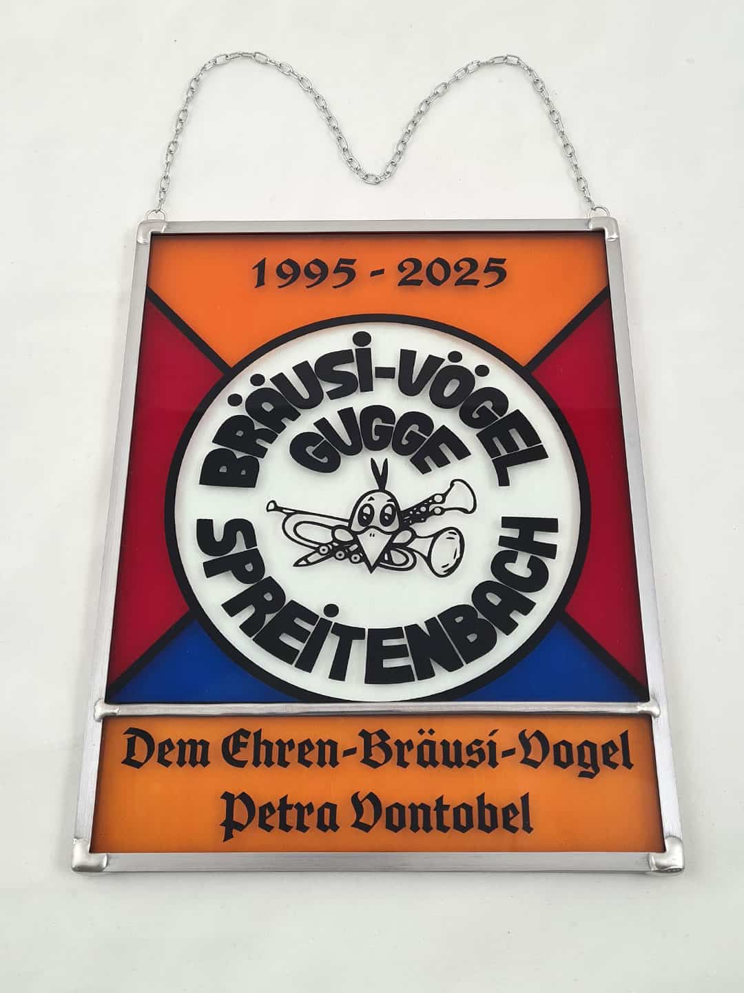 Auch bei individuellen Motiven können wir auf die Erfahrung aus zahlreichen Projekten zurückgreifen und eine ästhetisch stimmige Umsetzung garantieren. Die Grösse wurde so gewählt, dass die Scheiben gut sichtbar sind, dabei aber leicht und handlich bleiben – ideal für Montage und Versand.
