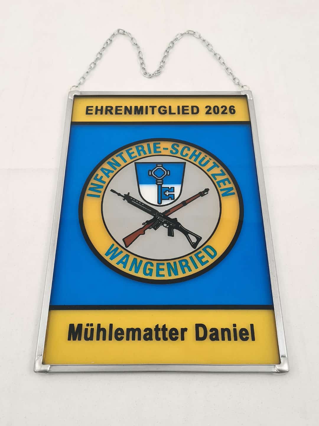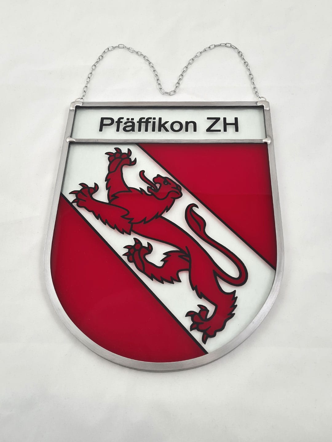 Die maximale Grösse liegt bei 20.5 cm im Durchmesser für runde Ausführungen und bei 20.5 × 26 cm für rechteckige sowie wappenförmige Varianten. Innerhalb dieser Masse realisieren wir präzise Zuschnitte und achten auf harmonische Proportionen – ganz gleich, ob es sich um ein historisches Gemeindewappen oder ein modernes Firmenlogo handelt.